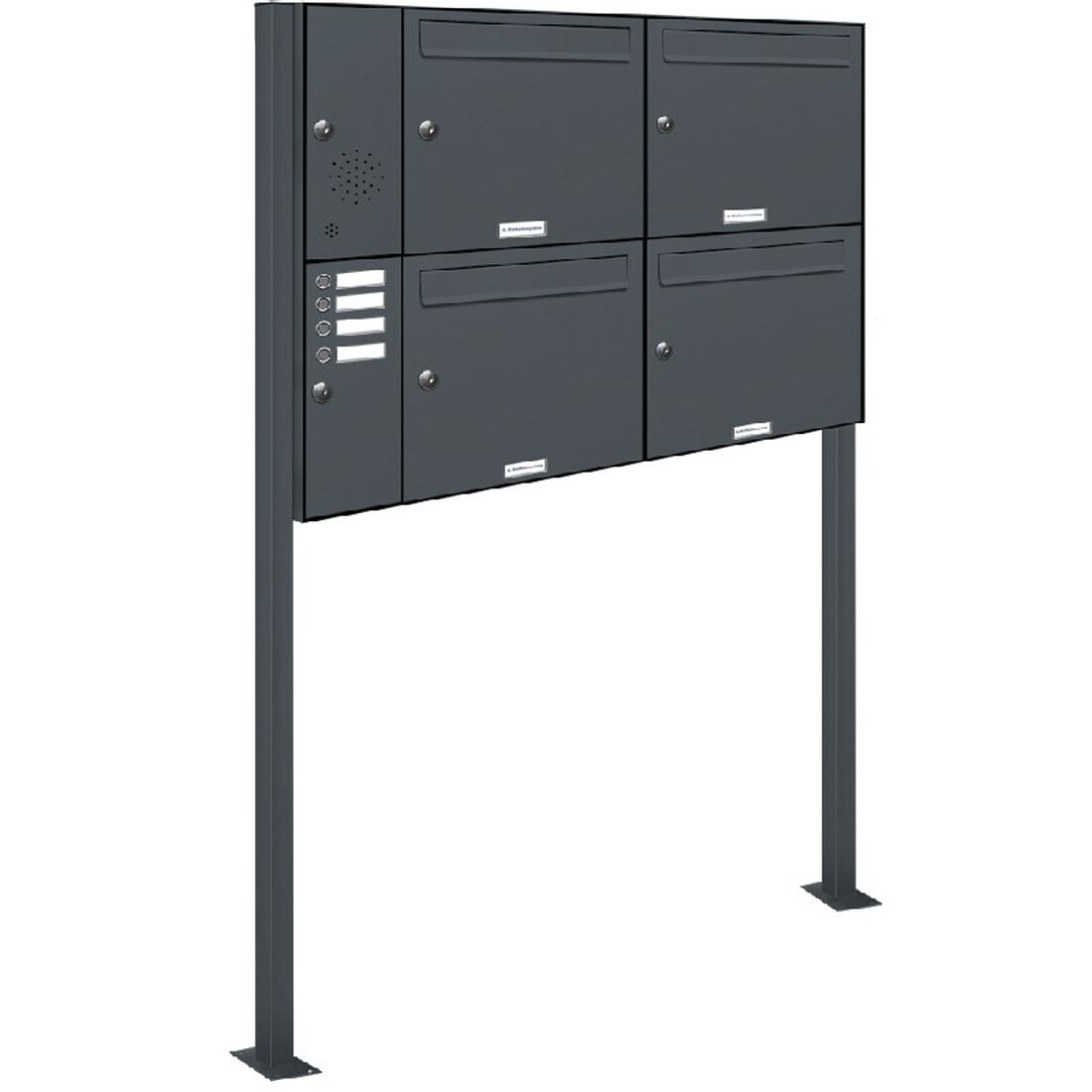 AL Briefkastensysteme 4 Fächer Premium Stand Briefkasten Anlage in RAL 7016 Anthrazit Grau, Post A4, robust, wetterfest, Artikelnummer: 132P4S2P7016