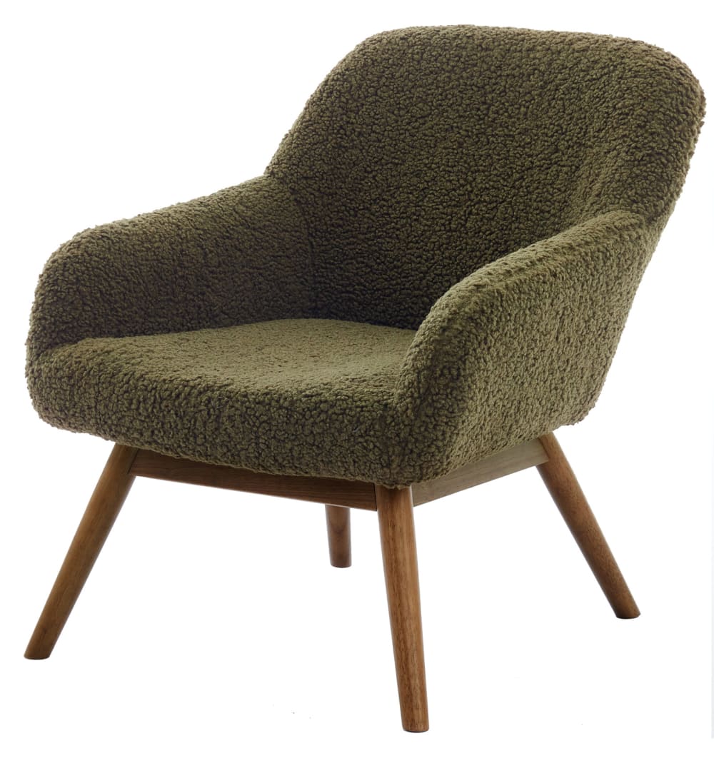 Poltrona in legno patinato noce e tessuto bouclé Army