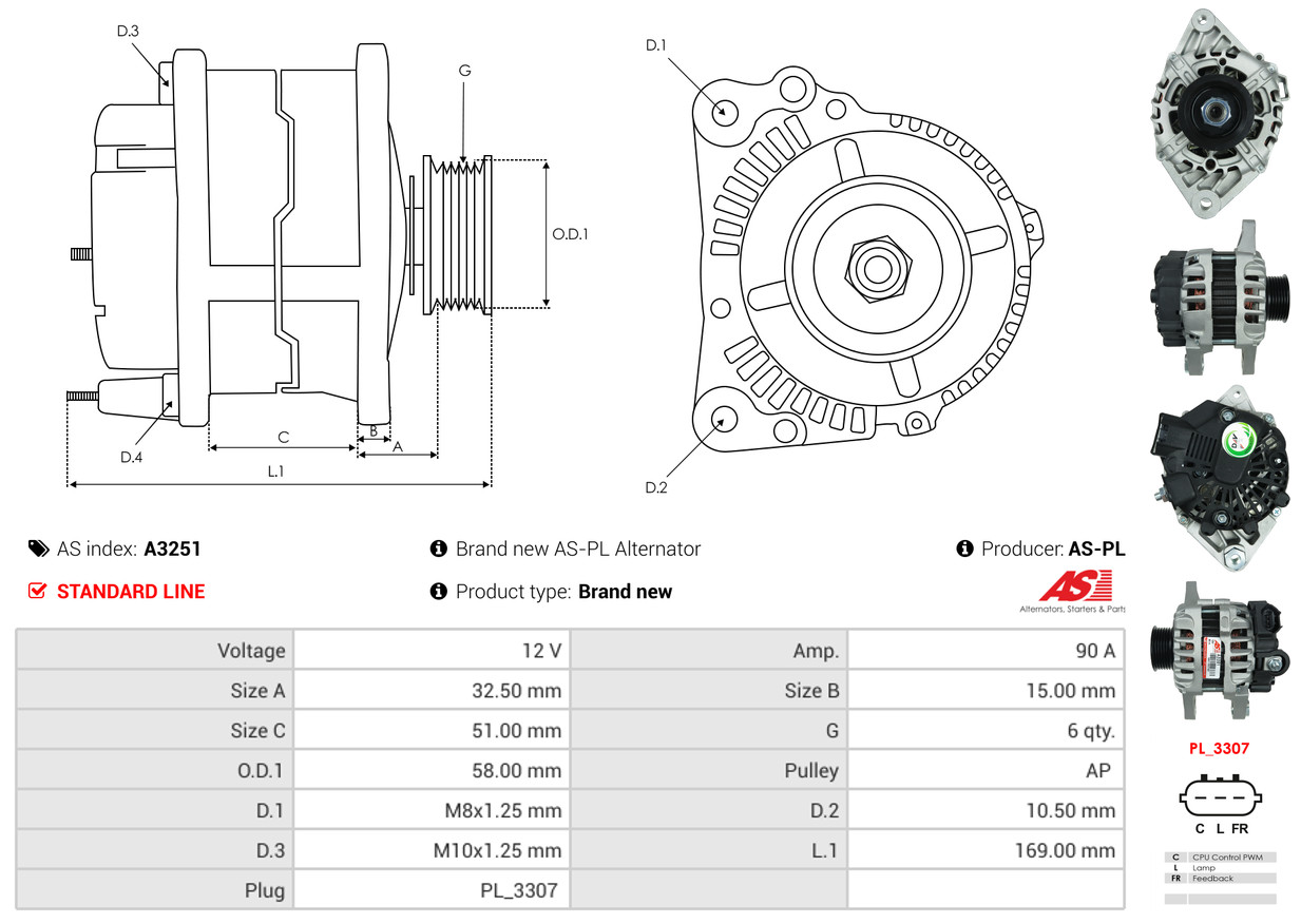 AS-PL Generator 12V 90A für HYUNDAI (BEIJING) 37300-2B510 37300-2B300 37300-2B500 A3251