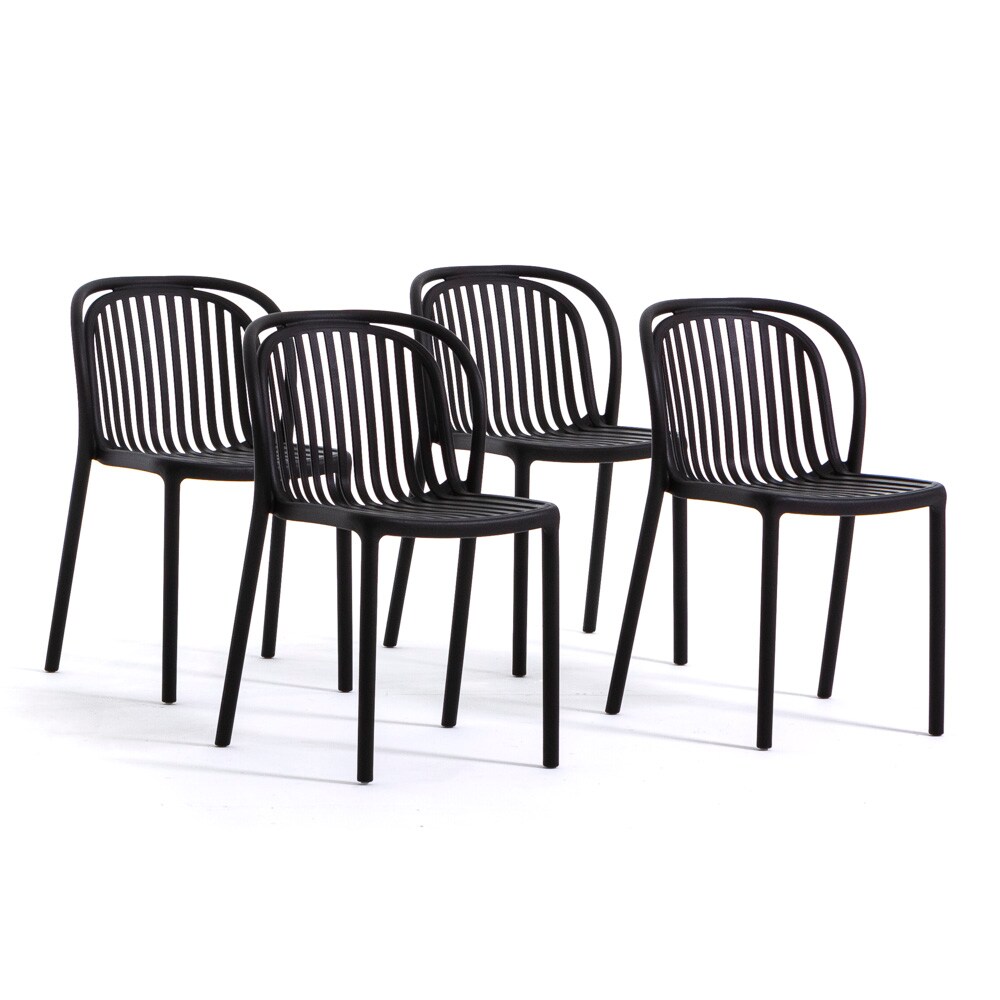 RATTATAN Set aus 4 Stühlen aus harzverstärktem Glasfaserharz,modernes Design,stapelbar für Außenbereich,Garten,Bar,Restaurant,Küche–Eloisa–Schwarz
