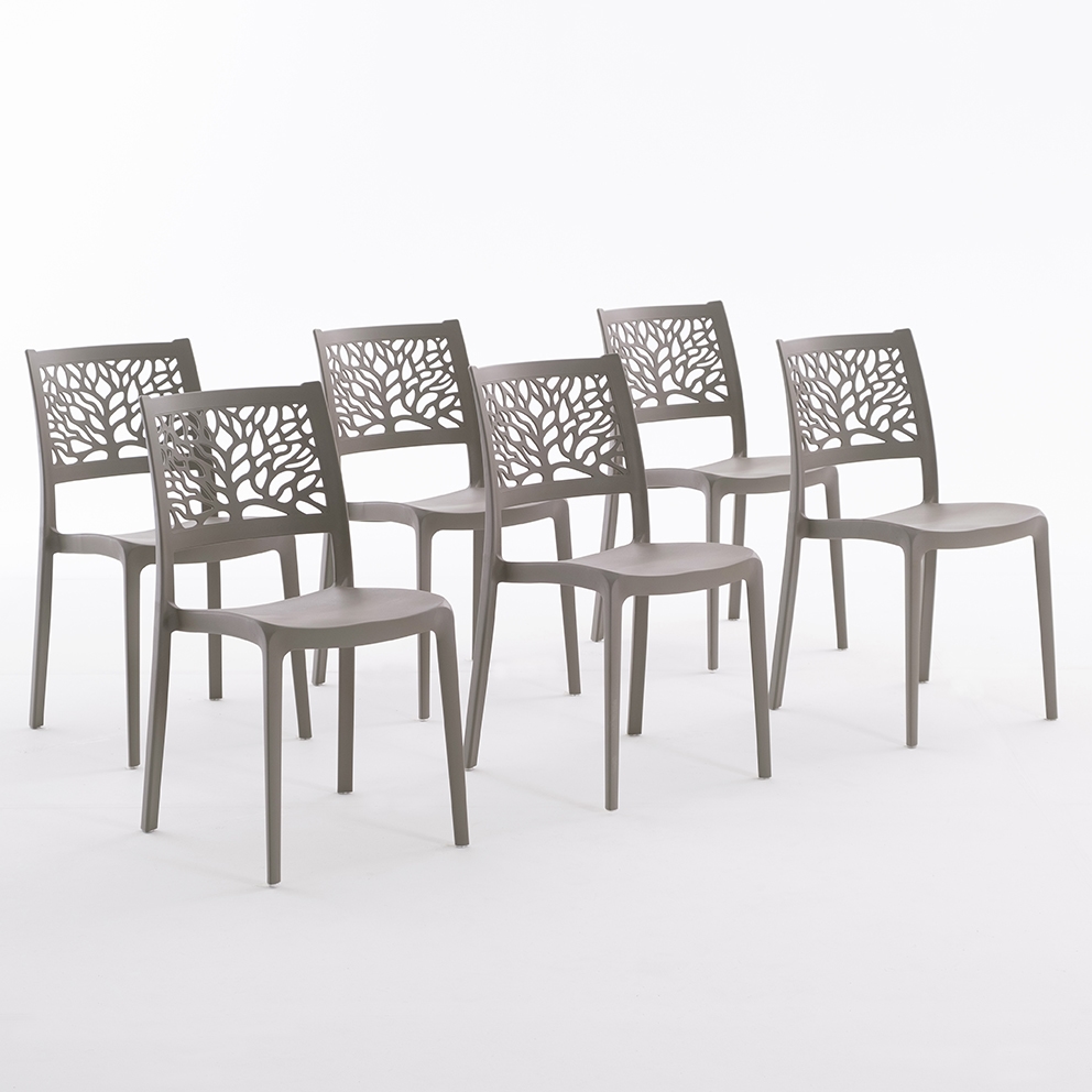 RATTATAN 6er-Set stapelbare Stühle aus Polypropylen mit Glasfasern für Außenbereich und Garten, Bar und Restaurant, Küche modernes Design - FLORA - Taubengrau