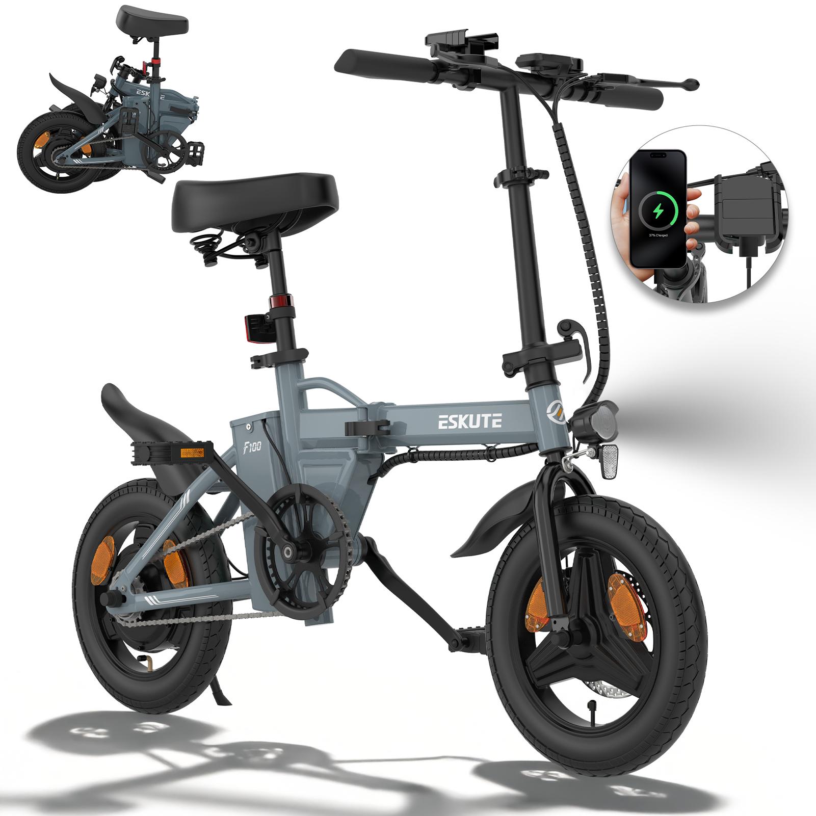 ESKUTE F100 Opvouwbare Handige E-Bike 250W Motor 36V9Ah Batterij 14 Inch Dikke Banden Elektrische Fiets Stad Buiten Elektrische Fiets blauw