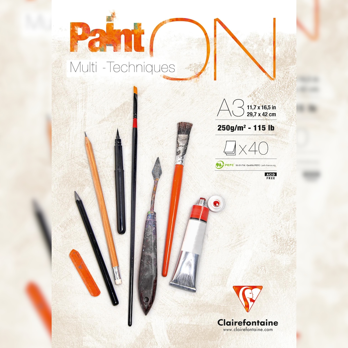 Clairefontaine 2x PaintON Blanc, Block A3, kopfseitig geleimt, 40 Blatt, 250g, weiß, Mixed Media - 96536C