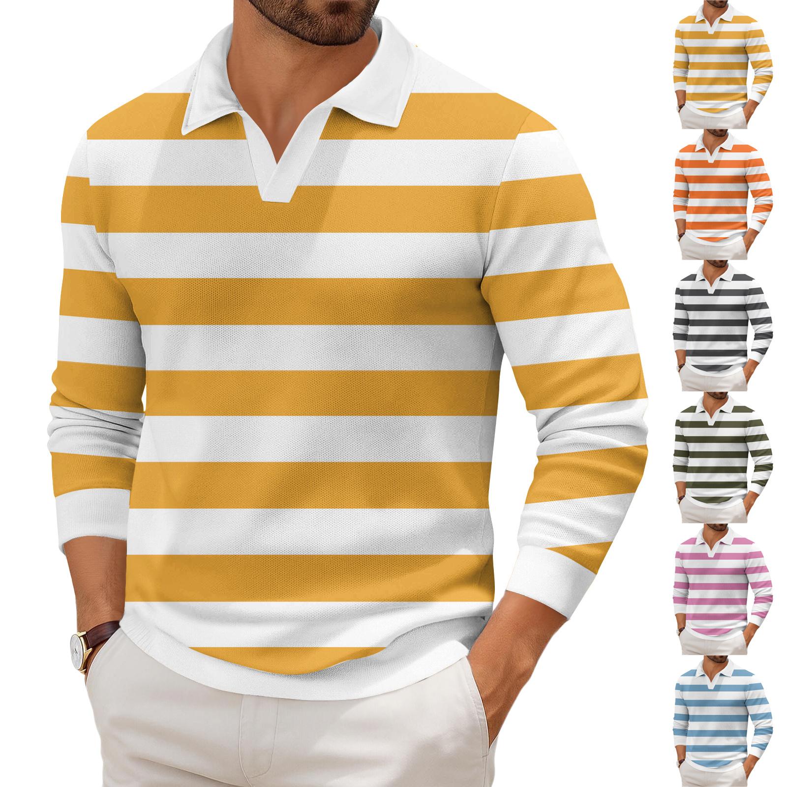 Men's Casual Fashion Printed Lapel Long-sleeved Knitted Bottoming Shirt Top cm blue