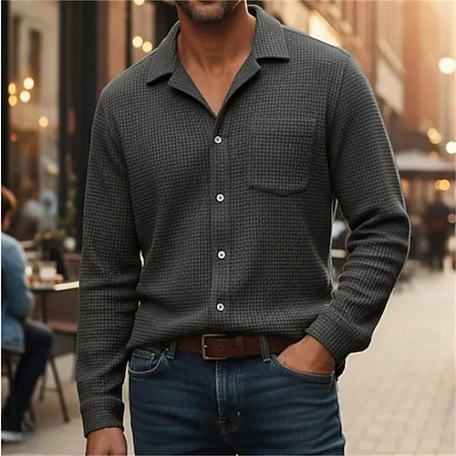 Per uomo Camicia Camicia a nido d'ape Tessuto Camicia casual Nero Rosa Blu marino Verde Grigio Manica Lunga Semplice Colletto cubano Casuale Quotidiano Tasca Frontale Abbigliamento Elegante Moda