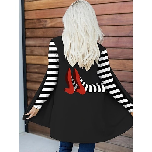 Cappotto invernale donna trench leggero confortevole stampa teschi aperto vintage moda casual vacanza strega collo senza collare taglio morbido maniche lunghe abbigliamento esterno nero bianco