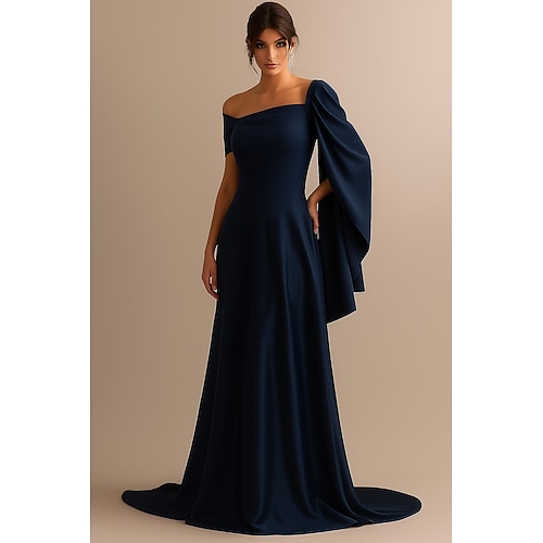 Linea ad A Lunghezza al pavimento Abito da Sera Da principessa Abito formale Elegante Manica 3/4 Senza Spalle Matrimonio Formale Tasca Raso Elasticizzato con Arricciato