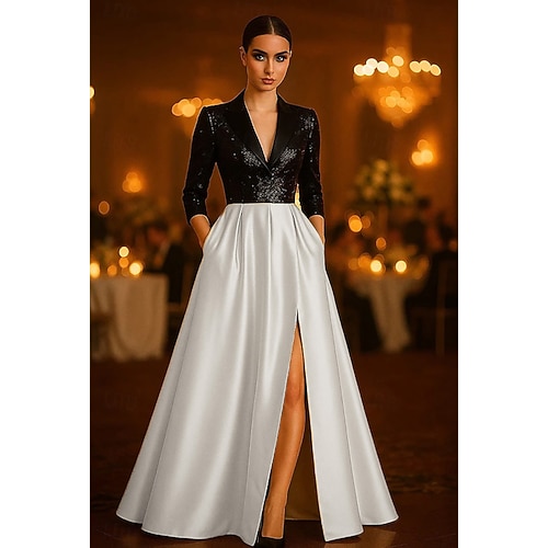 Per donna Abito da smoking Linea ad A Formale Ospite di nozze Derby del Kentucky Raso Elegante Stile Celebrità Manica 3/4 plissettata Lunghezza al pavimento