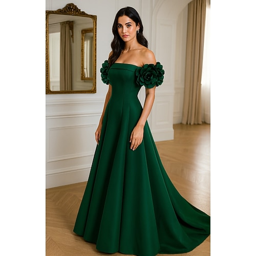 Linea ad A Lunghezza al pavimento Abito da Sera Abito formale Elegante Scintillante Senza Maniche Senza Spalle Matrimonio Formale Mantelle Raso con Fiore sulla Spalla