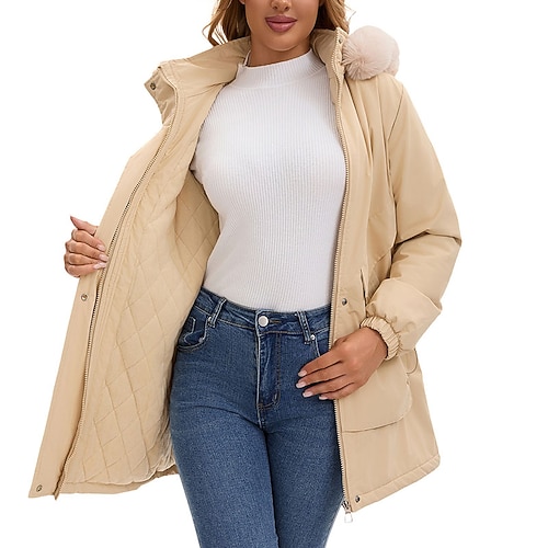 Per donna Cappotto Invernale Parka Caldo Confortevole Bordo in pelliccia Cerniera Tasca Con cintura Casual Semplice Vacanza Streetwear Casuale Abbigliamento quotidiano Lungo Con Cappuccio Taglia