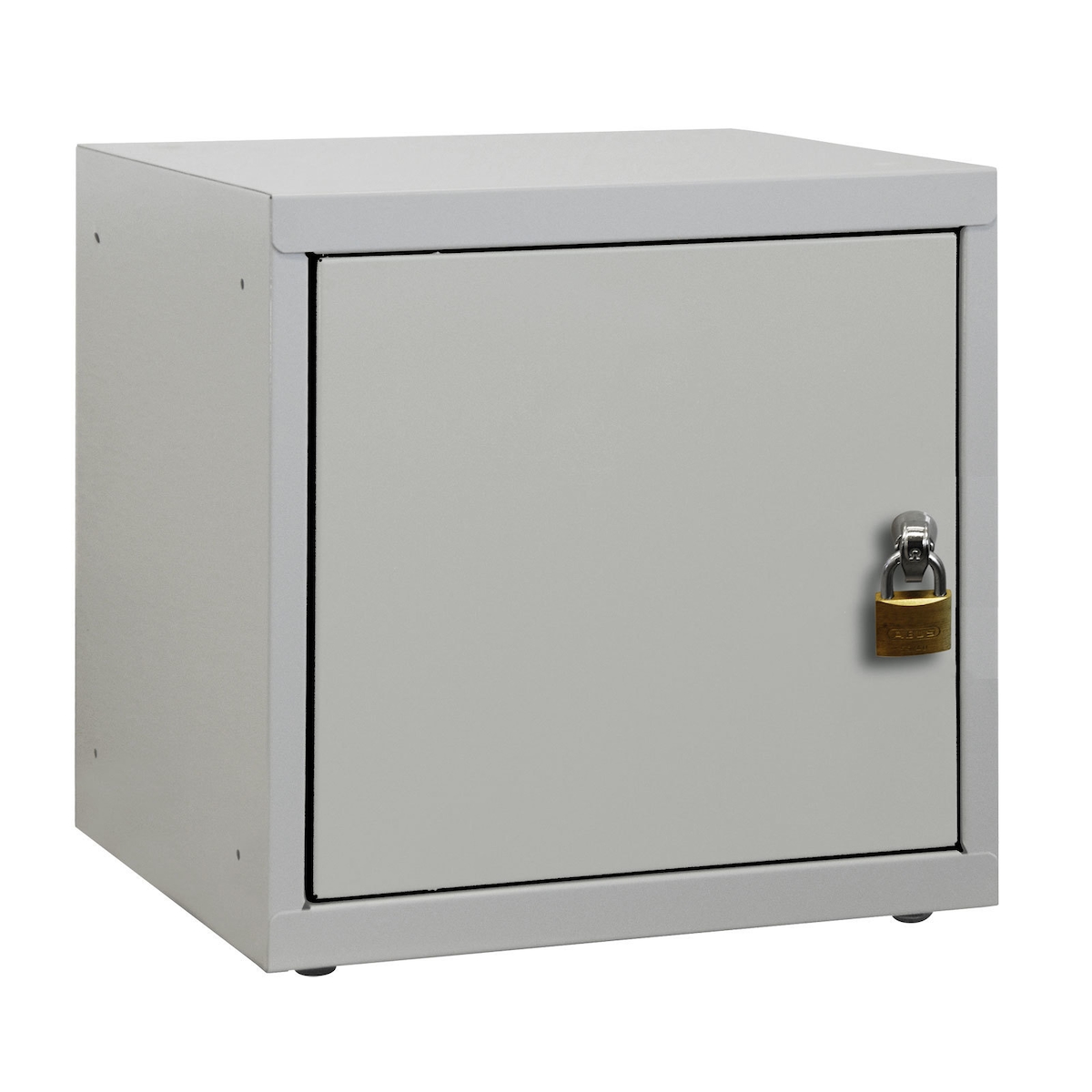 PROREGAL Schließfachwürfel Blocky mit Drehriegelschloss für Vorhängeschloss | HxBxT 40x40x40cm | Lichtgrau