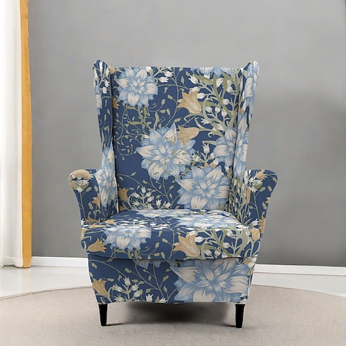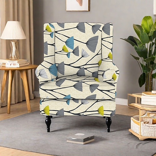 Copripoltrona con schienale alto, in poliestere con stampa floreale a righe e geometrica, per soggiorno, camera da letto e ufficio domestico