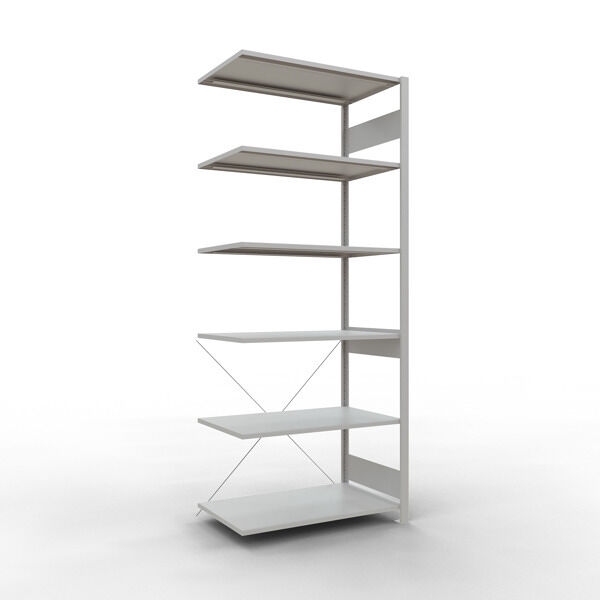 SCHULTE Lagertechnik Anbauregal, Eckregal (Feld C) 2500 x 1000 x 400, 6 Fachböden, Kreuzstrebe, RAL 7035 lichtgrau
