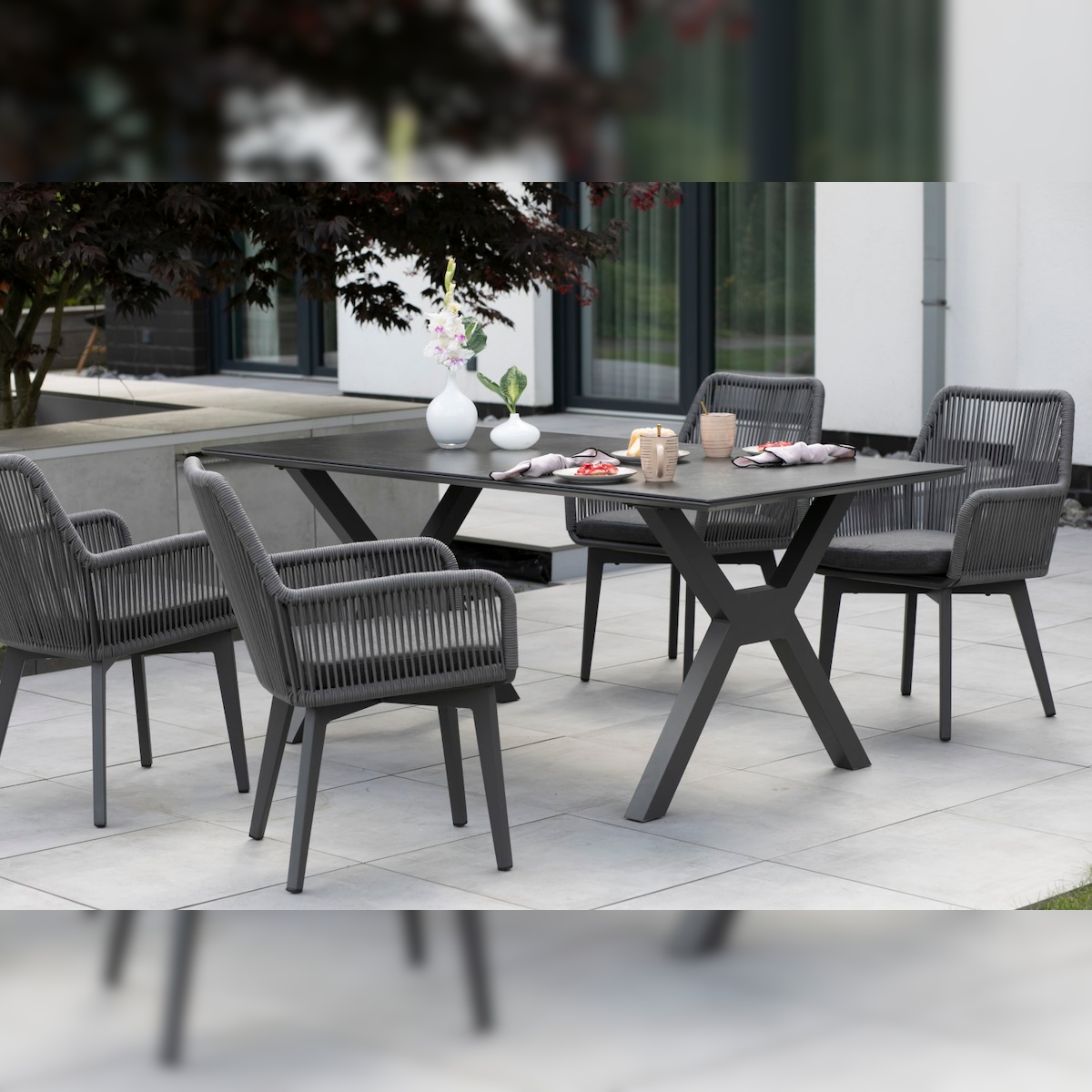 Mr. Deko Gartenmöbelset Tisch Granada 200 cm, 4er Set Diningsessel Marbella
