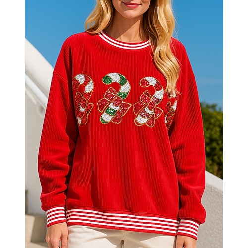 Per donna Felpa di velluto a coste Manica Lunga Top Athleisure Grafico Di tendenza Escursionismo Viaggio Vacanze abbigliamento sportivo Abbigliamento sportivo Bianco Rosso
