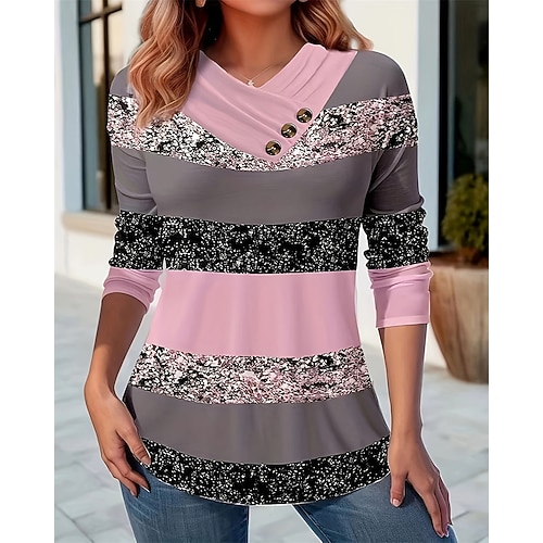 Per donna Blusa Top Eleganti Blocco di colori Semplice Elegante Vintage Signore Manica Lunga Scollo a V Top Regolari Lavoro Quotidiano Ferie Arricciato Bottoni Stampato Blu Rosa Viola Verde Cachi