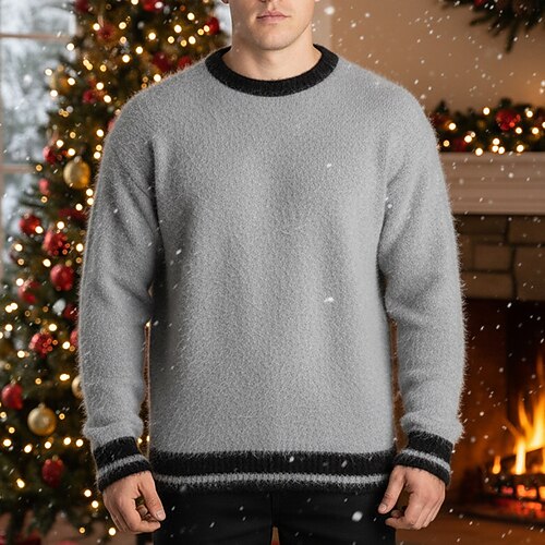 Per uomo Maglioni di Natale Maglione Maglione a maglia A Coste Maglia Top Regolari Lavorato a maglia Blocco di colori Dolcevita Moda Essenziale Natale Vacanza Abbigliamento Autunno Inverno Bianco