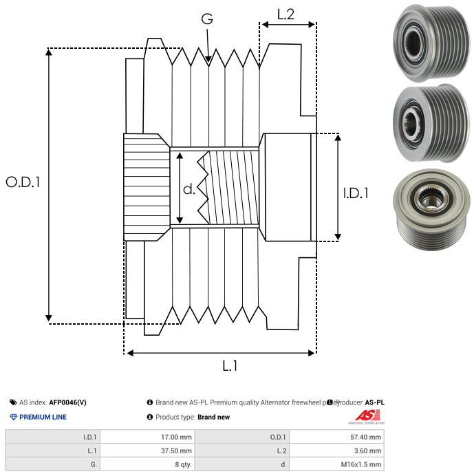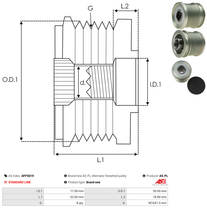 AS-PL Generatorfreilauf AFP1003 für OPEL 55566587 1204188