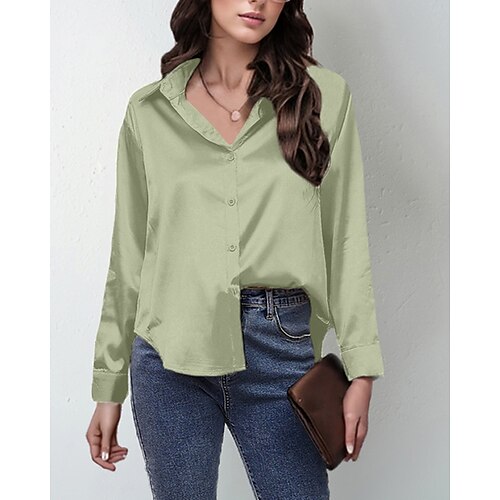 Per donna Camicia Elegant Elegante Raso/Satin Semplice Elegante Casual Manica Lunga Colletto a Camicia Top Regolari Quotidiano Uscire Bottoni Verde chiaro Cammello Verde Grigio scuro Estate Autunno