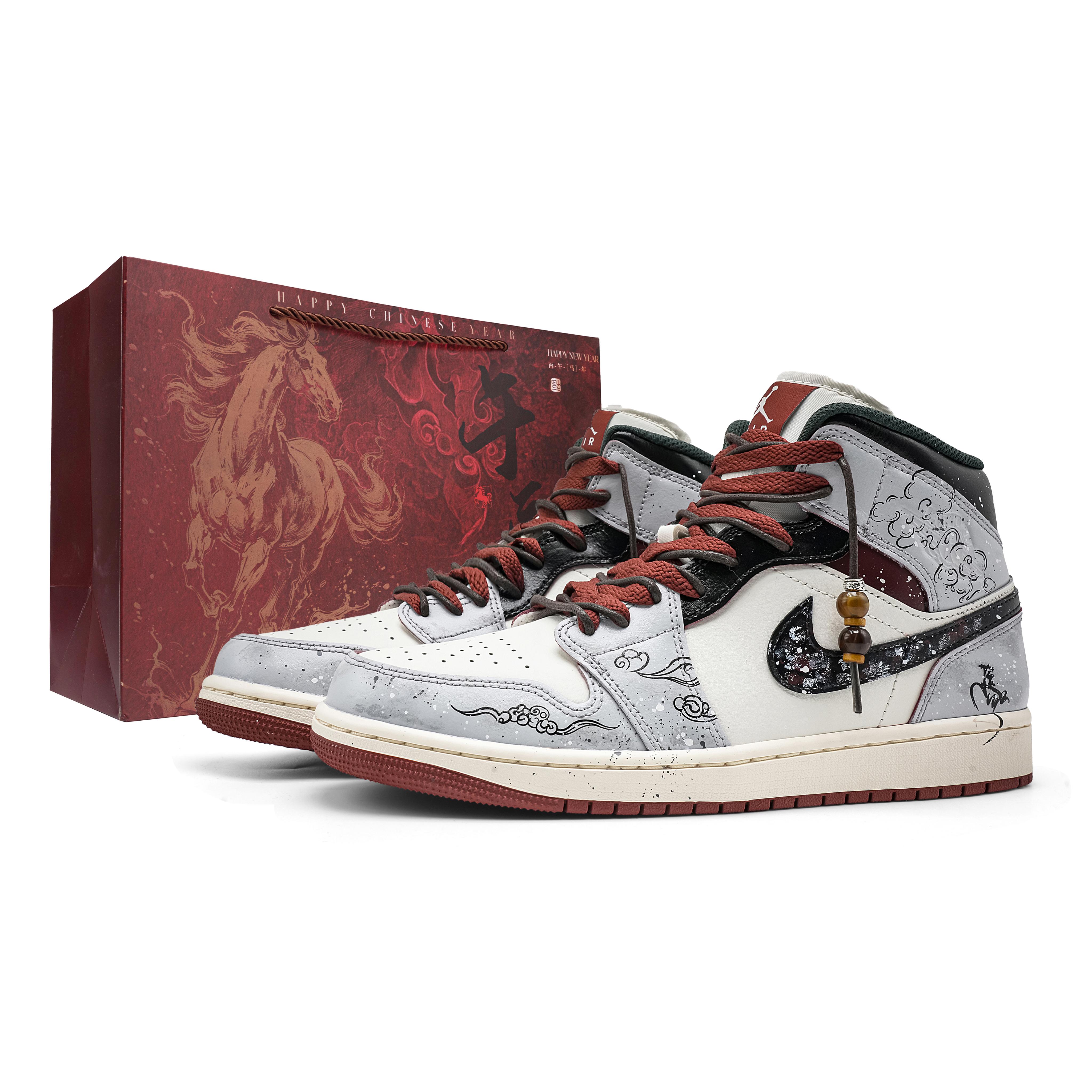 Jordan Air Jordan 1 Auspicious Dragon And Phoenix Heaven Bestowed Perfect Match FQ8041-300(Team801-) cm