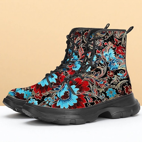 sneakers alte floreali da uomo, eleganti scarpe con lacci e suola in gomma resistente, comode per l'abbigliamento casual, moda outdoor alla moda per la primavera e l'autunno, perfette per lo streetwear e le avventure quotidiane