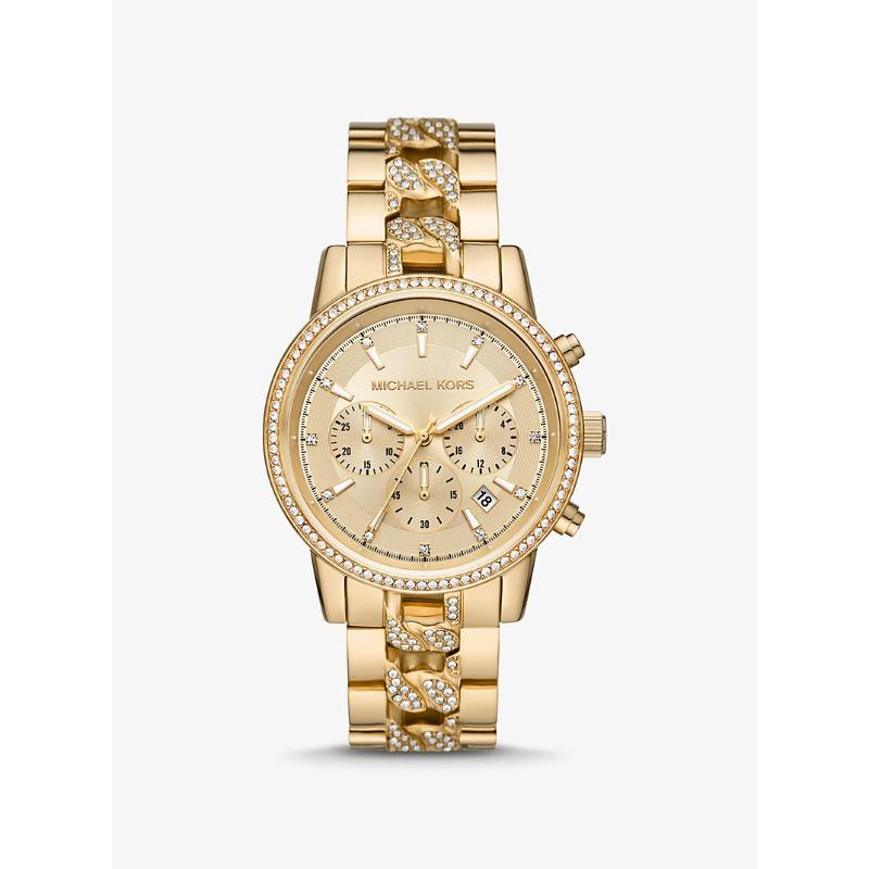 Michael Kors Überdimensionale Bryant Pavé Goldfarbene Kettenglied-Uhr MK6937 gold