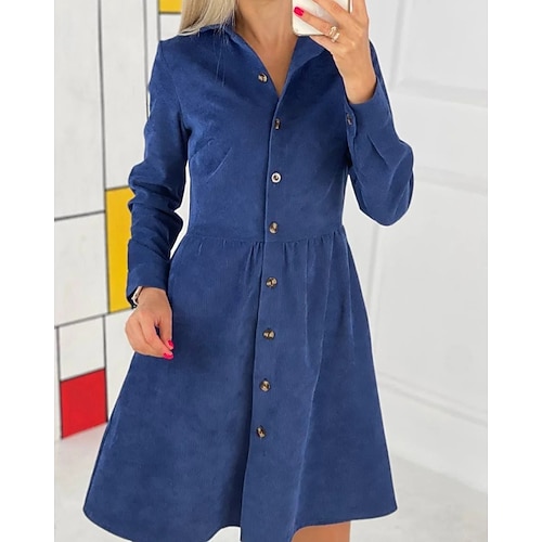 Per donna Mini Abito Abito a trapezio Vacanza Casual All'aperto Vacanza Quotidiano Vestibilità regolare Semplice Manica Lunga Colletto a Camicia Blu Nero Blu marino Estate Autunno