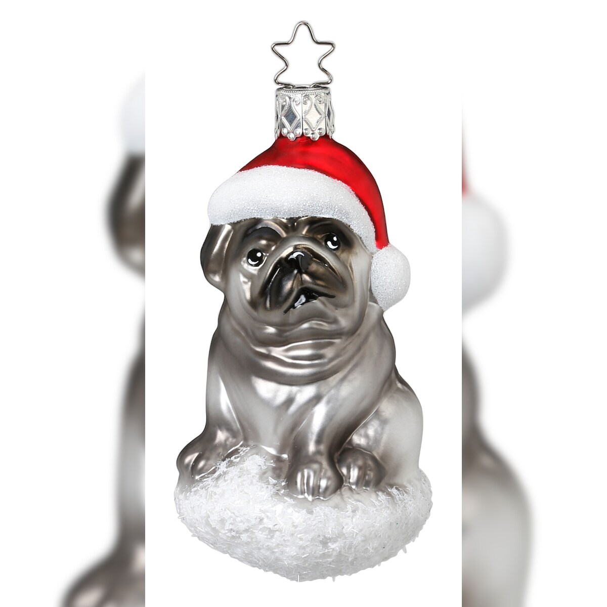 Inges Glas Christbaumschmuck Mops Glas 10,5 cm grau