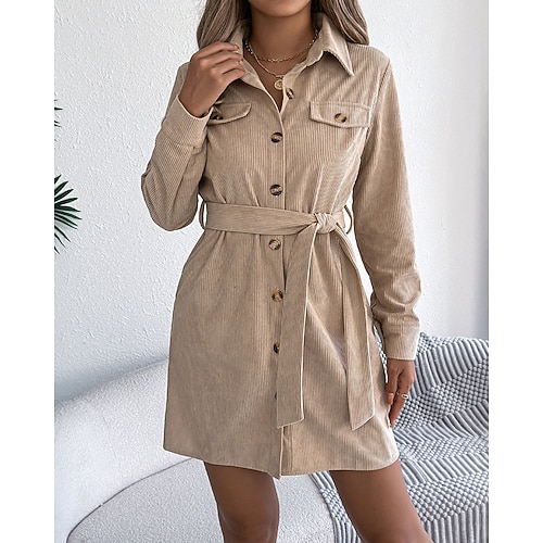 Per donna Mini Abito Abito Camicia Moda Moderno Quotidiano Ufficio Ferie Vestibilità regolare Semplice Manica Lunga Colletto a Camicia Nero Vino Cachi Primavera Autunno Inverno