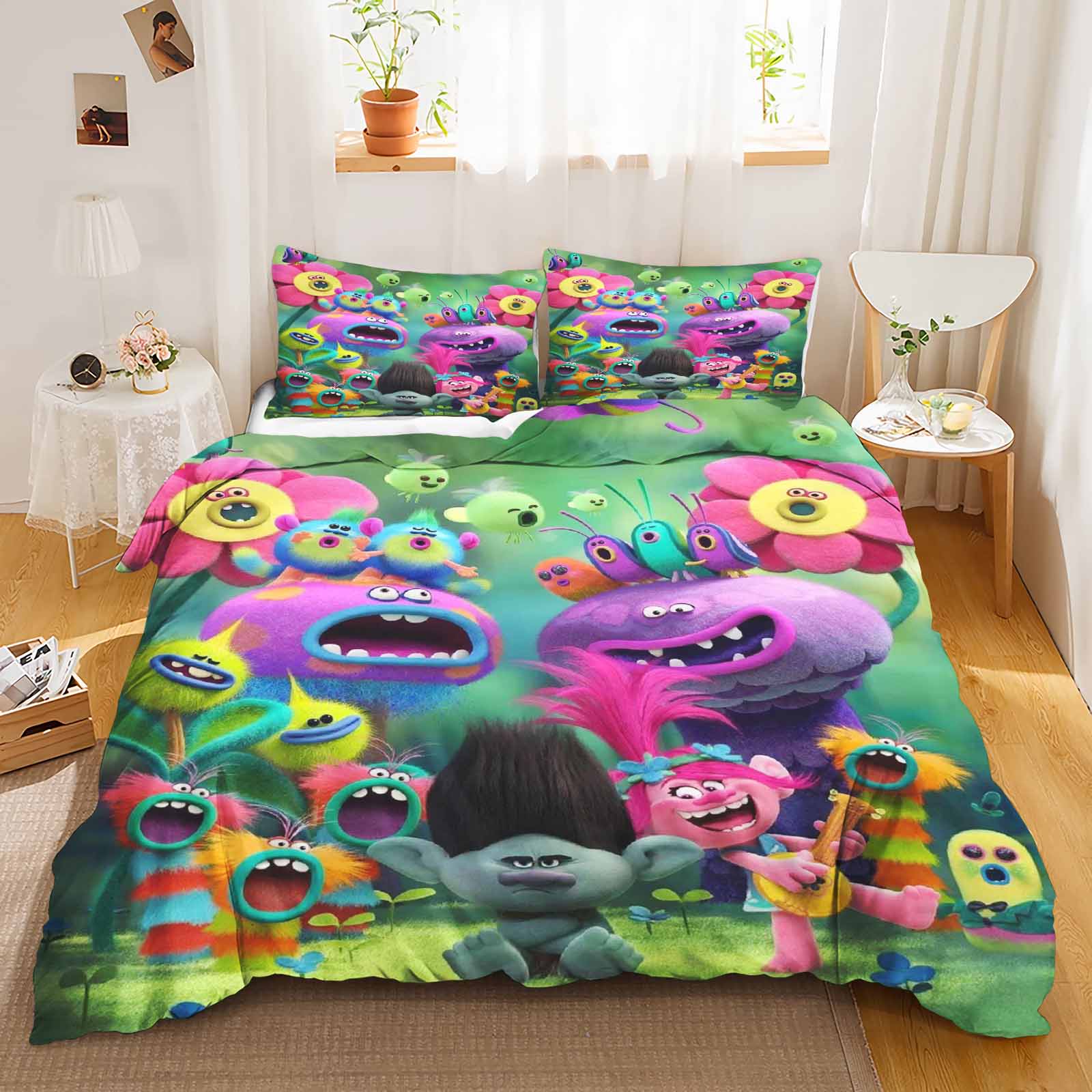 Trolls Bettwäsche-Set Bettdecke Bettwäsche 3D Kinderbettwäsche-Set 3-teilig 1 Bettbezug King-Size