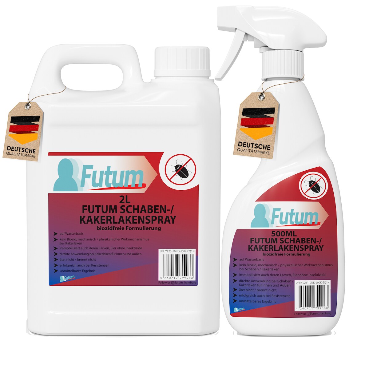 FUTUM 2L + 500ml Schabenspray / Kakerlakenspray bekämpft Insekten, Eier, Larven ohne Biozide auf Wasserbasis, Sofortwirkung ohne Flecken