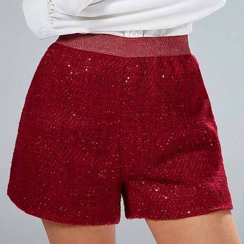 Per donna Shorts Pantaloncini Estivi Pantaloni caldi Dritto Elegante Vacanza Moda Corto Vita media Tinta unica Paillettes Patchwork Fascia Elastica Comodo Elasticizzato Quotidiano Casa All'aperto
