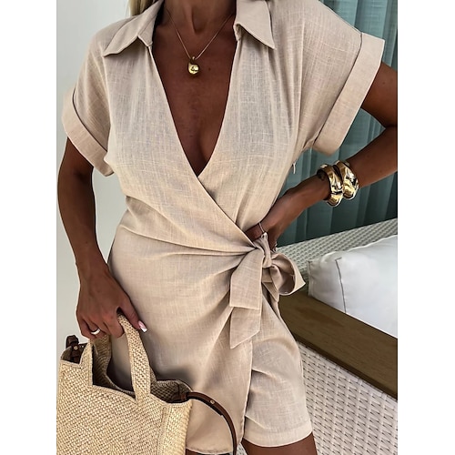 Per donna Tutina Elegante Tinta unica Manica Corta Pantaloncini larghi Scollo a V Patchwork Quotidiano Vacanza Vestibilità regolare Rosso Marrone Verde Estate