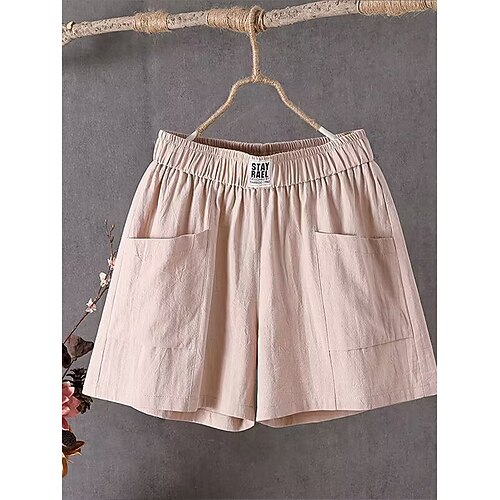 Per donna Pantaloncini in cotone e lino Pantaloncini Estivi Shorts da Spiaggia Pantaloncini larghi Vacanza Essenziale Casual Corto Vita Alta Semplice Tasca Fascia Elastica Comodità Asciugatura Rapida