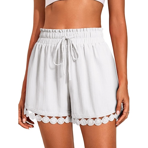 Per donna Chinos Shorts Pantaloncini Estivi Vacanza Moda Streetwear Corto Vita Alta Semplice Coulisse Pizzo Elastico in vita Comodità Traspirabilità Confortevole Inelastico Micro-elastico Quotidiano