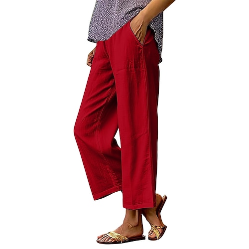 Pantaloni in lino sintetico da donna pantaloni estivi pantaloni casual moda vintage base lunghezza alla caviglia vita alta tasca comfort all'aperto inestensibile quotidiano vacanza street
