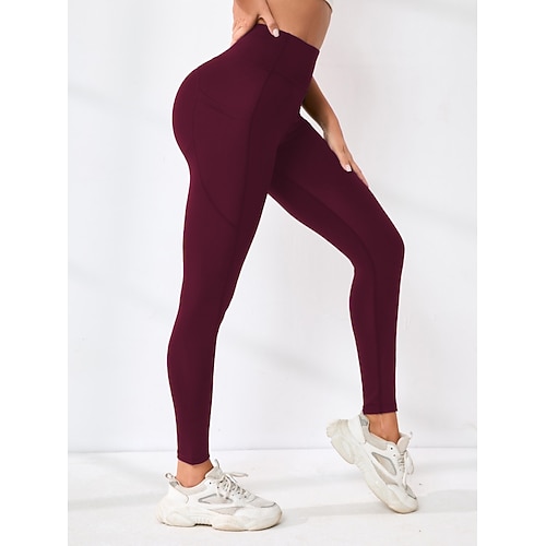 Per donna Pantaloni Leggings Moda Streetwear Essenziale Lunghezza intera Vita Alta Semplice Tasca Elastico in vita Comodità Alta elasticità Quotidiano Palestra Corsa Nero Borgogna Blu marino Verde