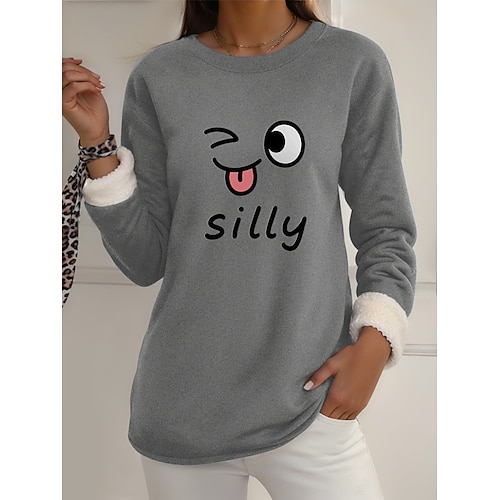 Per donna Pigiama felpato foderato in pile Felpa Pullover Felpe Lettera Streetwear Casual Manica Lunga Girocollo Top Regolari Streetwear Ferie Stampato Nero Rosa Blu Grigio chiaro Grigio scuro Inverno