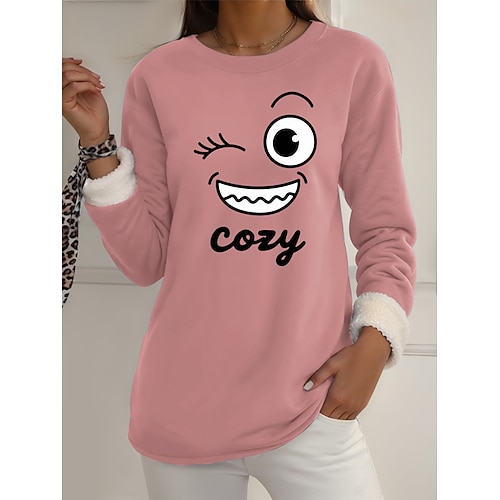 Per donna Pigiama felpato foderato in pile Felpa Pullover Pullover Felpe Grafico Caldo Streetwear Casual Manica Lunga Girocollo Top lunghi Casa Abbigliamento Quotidiano Casuale Stampato Nero Rosa