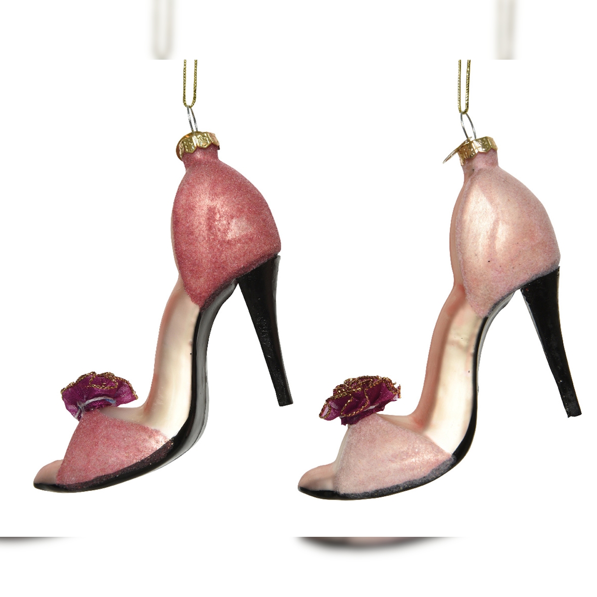 1 High Heels Glas Blumen 10cm Christbaumschmuck Weihnachtskugeln mix rosa pink