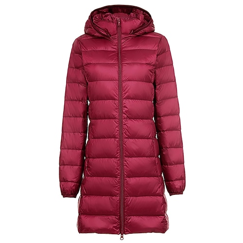 Per donna Cappotto Invernale Giacca Piumino Caldo Confortevole Cerniera Tasca Casual Tinta unica Vacanza Abbigliamento quotidiano Uscire Weekend Lungo Con Cappuccio Vestibilità regolare Manica Lunga