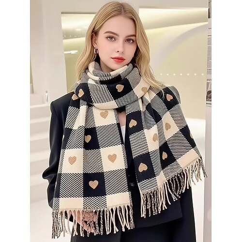 sciarpa da donna in poliestere con motivo a cuore, vari colori, ideale come regalo di San Valentino e da indossare tutti i giorni