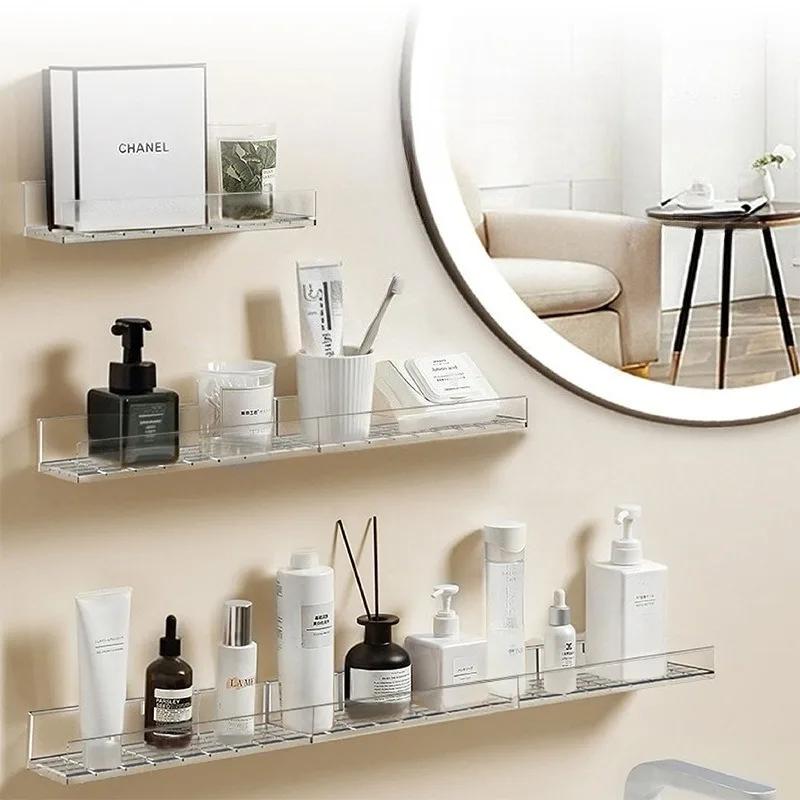No-Drill Self-Adhesive Bathroom Shelf - Wall Mounted Storage Organizer, Multi-Use for Makeup, Shampoo & Shower Essentials transparent