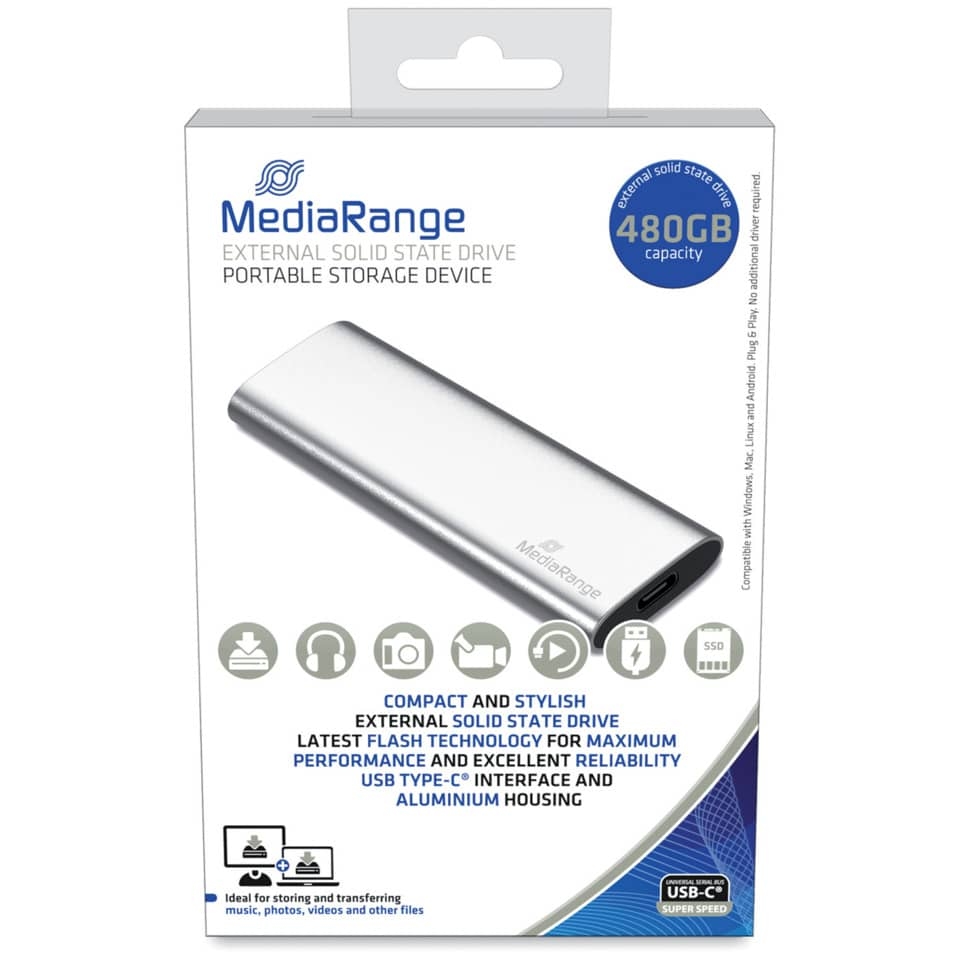 MediaRange MR1102 externes USB Type-C® Laufwerk SSD - 480 GB, silber