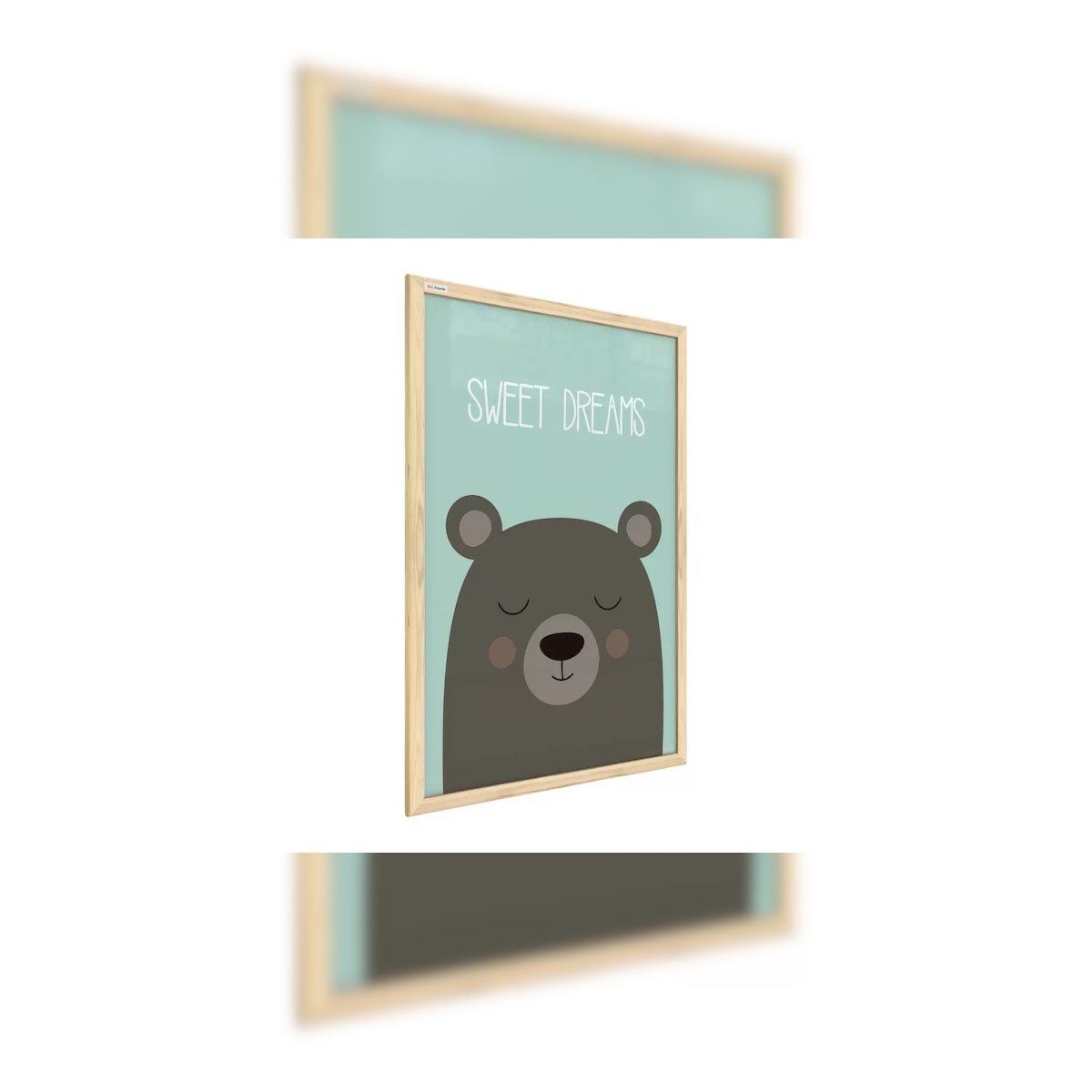 ALLBoards Teddybär „Sweet Dreams“, Pastellfarben, 60x40cm im Naturholzrahmen, Magnettafel