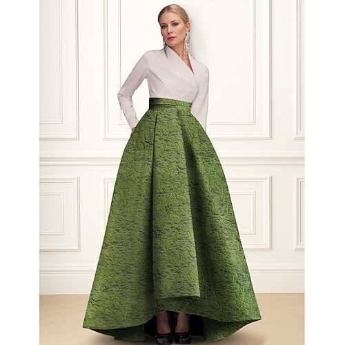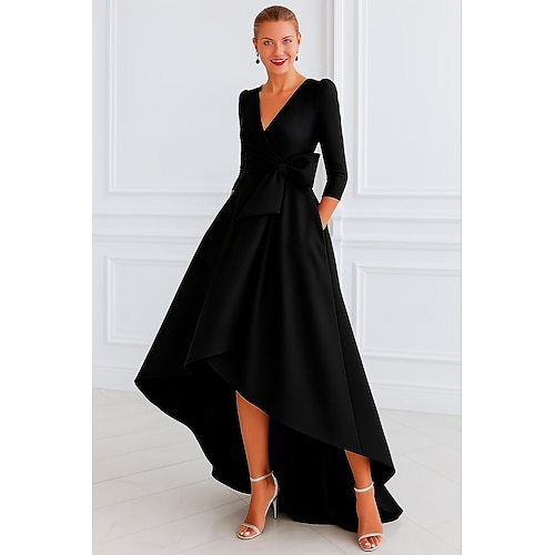 Linea ad A Asimmetrico Abito da Sera Da principessa Abito formale Elegante Setoso Manica Lunga Scollo a V Formale Tasca Raso con Tasca