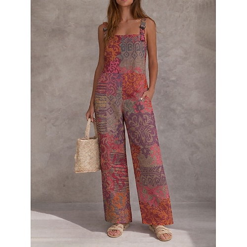 Per donna Salopette Attivo Floreale Senza Maniche Senza maniche Dritto Collo quadrato Tasca con tasca Quotidiano Spiaggia Vestibilità regolare Blu Rosso Verde Estate