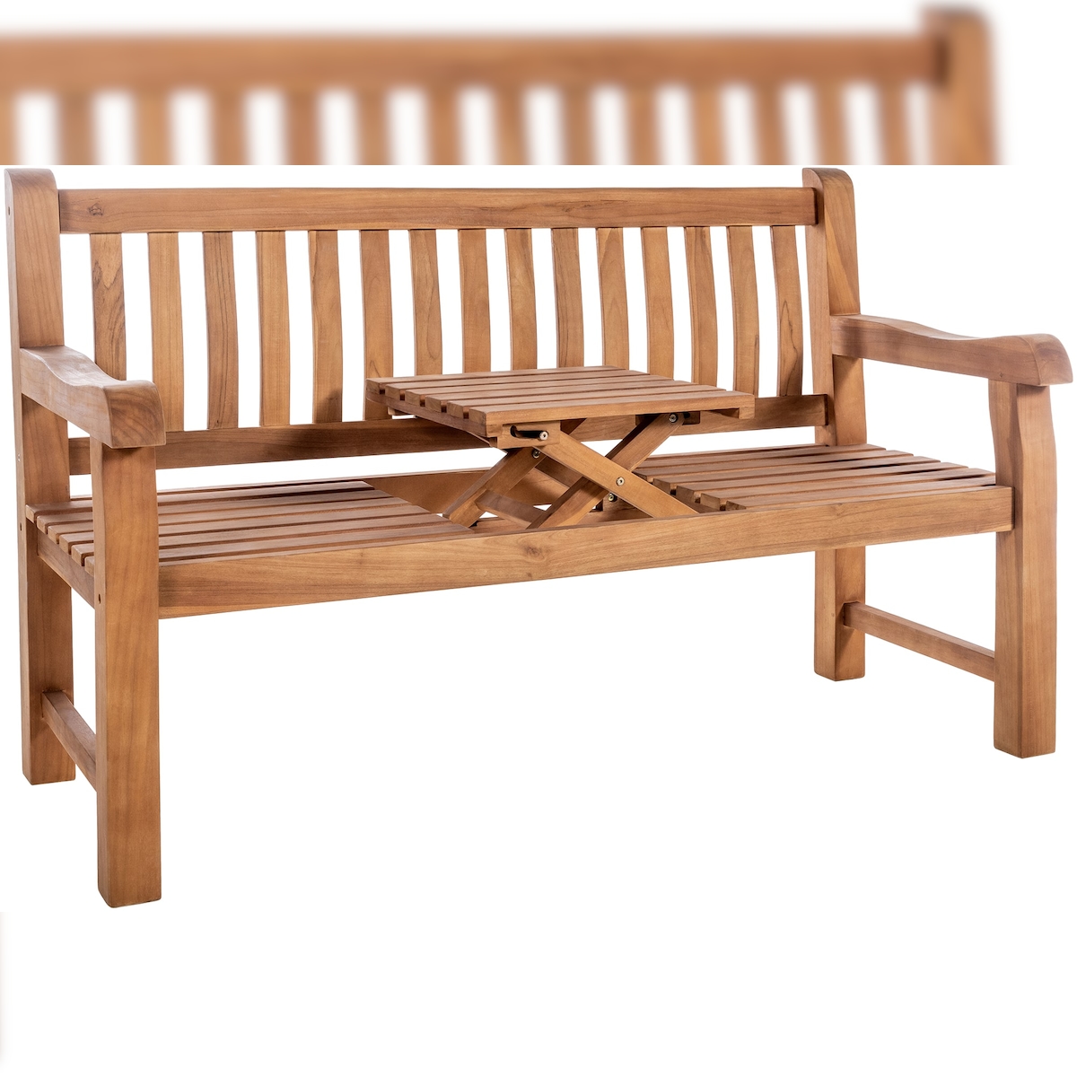 DELUKE Gartenbank Teakbank TITOR - Holz Teak 150x61x93 cm | Holzbank 150 Cm Mit Klapptisch Gartenbank Sitzbank Mit Lehne Wetterfest Bank Garten Terrasse