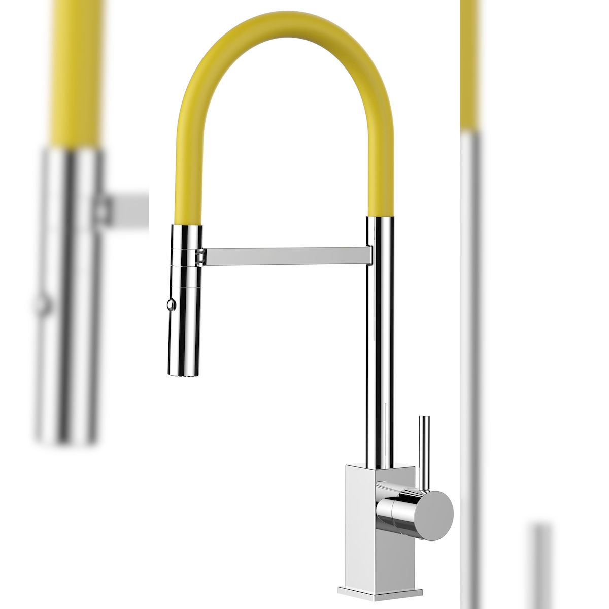 Vizio Wasserhahn Küchenarmatur Spültischmischer, Verchromt mit 360° schwenkbarem Gelb Auslauf, abnehmbare 2 strahl Handbrause, Quadratisches Design