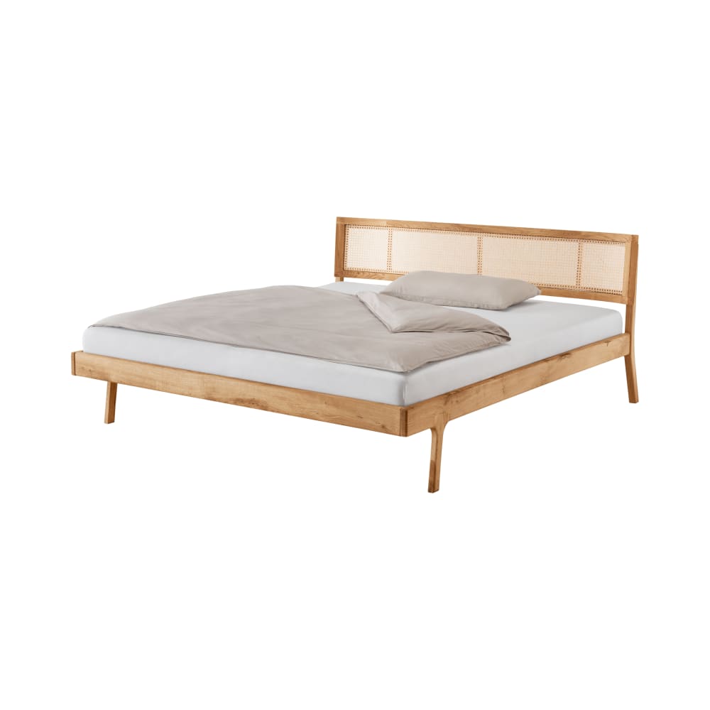 Lit en bois massif et en cannage 140 x 190 cm